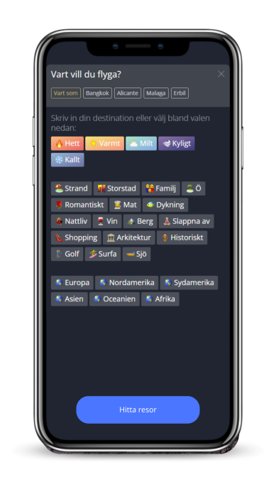 Avionero är ett svenskt teknikbolag som utvecklat en AI-baserad jämförelsesite för flyg. Gör öppna och flexibla sök som du inte kan göra någon annanstans, exempelvis ett varmt land med strand i december och en weekend till en storstad i Europa under våren.