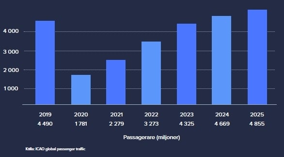 Källa: ICAO global passenger traffic